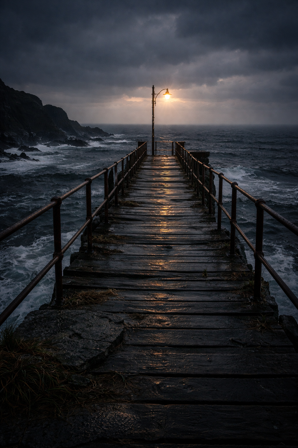 Une vieille jetée battue par les vents, grinçante et fatiguée. L’endroit préféré des pêcheurs… et des rumeurs. On y a vu des silhouettes, tard le soir, qui n’auraient pas dû être là.